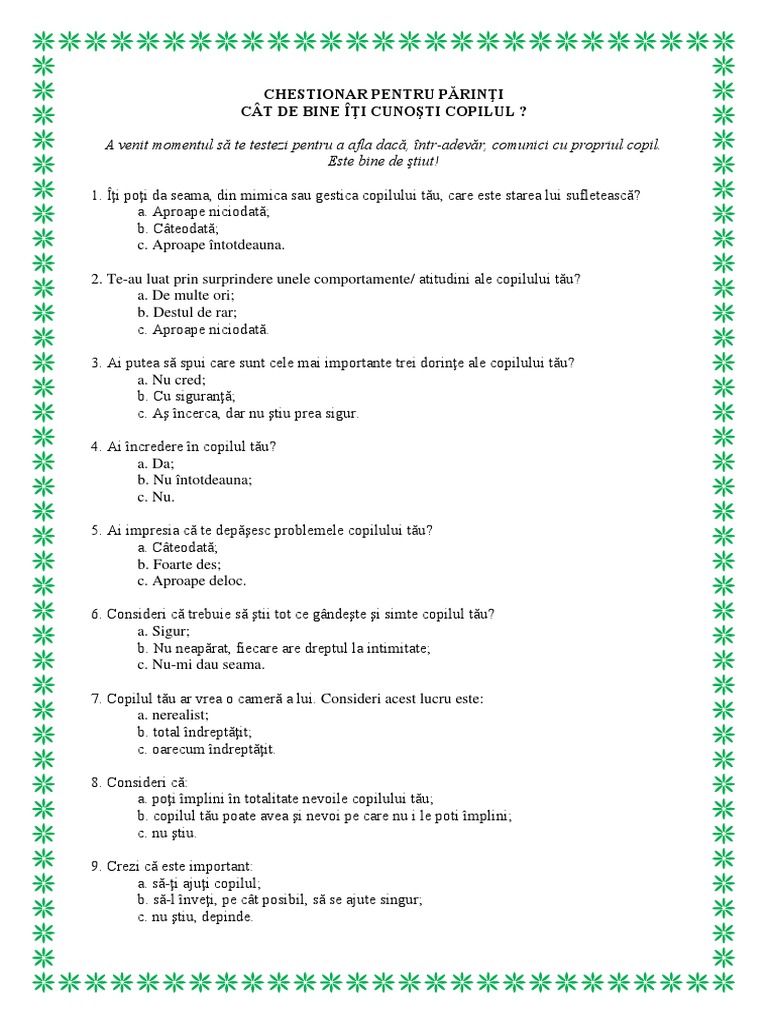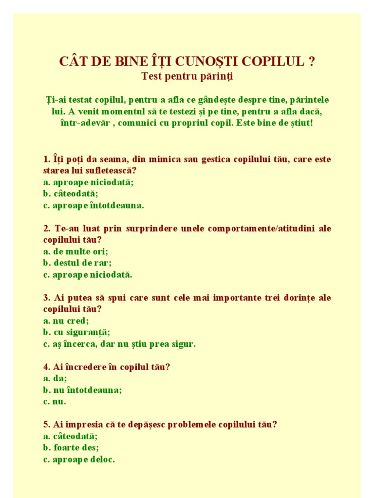 Posting Komentar untuk "Cat De Bine Iti Cunosti Copilul"